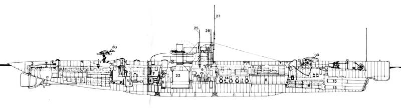 | 8 - Locaux batteries | 26 - Périscope d'attaque |